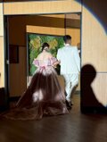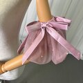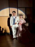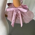 実例写真!パフスリーブ ピンク パール リボン ストレッチ 可愛い 結婚式/披露宴
