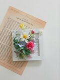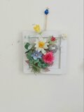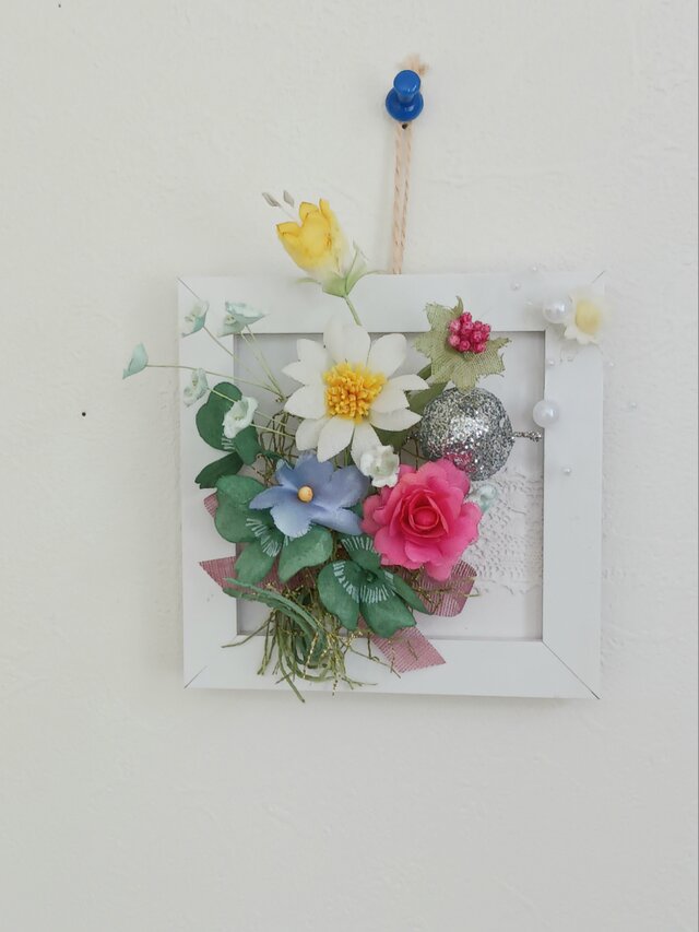 フレームの花は、白い布に形どり、カット、手染めしコテを使用し創作致しました。