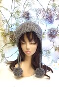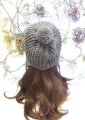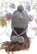 秋冬ニット帽 ニットキャップ ポンポン付き 手編みグレー帽子