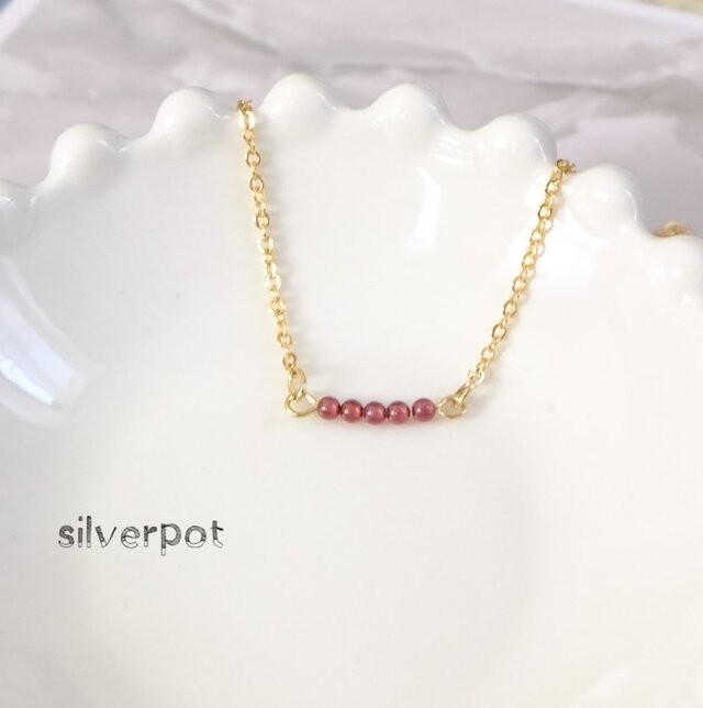 G101【天然石 1月の誕生石 ガーネット】のプチネックレス~ダークレッド 色&長さえらべます