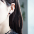 貝パールのピーコックブラックを一粒スタッドピアスに。