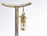 アースカラー銀化のローマングラスとたわわなストーンビーズ、インディゴブルービーズ、民族鈴の片耳ピアス
