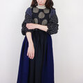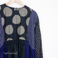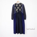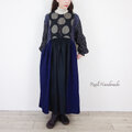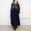 ドットとストライプのミックスリネン・シャーリングマキシワンピース