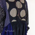 身頃には存在感のあるコットンリネンドット、脇にはネイビーストライプを。