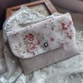 淡いピンクにかすれた色調で薔薇のブーケが描かれたシャビィシックなアンティーク綿麻です。