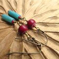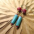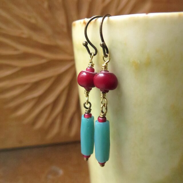 アンティーク ロシアンブルー 青緑 + ホワイトハート 金赤 ピアス&イヤリング 百世 momotose(西)