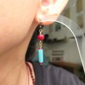 白いガラスを芯に、色ガラスを重ねたビーズ。