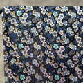 暗い背景に流れるように花々が配され、ところどころモザイクのように色が切り替わることで、幻想的な深みが生まれています。