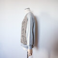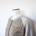 袖、裾、襟はグレーのリブニットで仕上げました。