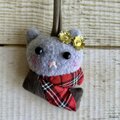 検索ワード→クリスマス、Xmas、クリスマスオーナメント、オーナメント、バッグチャーム、刺繍、手刺繍、秋冬、タータンチェック、猫、大人かわいい、大人可愛い、かわいい、プレゼント、ハンドメイド、ギフト、クリスマス、誕生日、手仕事、パーティー、イベント、ディスプレイ