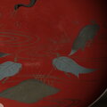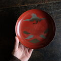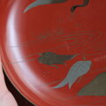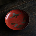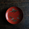 鶴と亀◆味のあるお品物。古輪島塗 漆芸蒔絵盃 中皿 漆器 骨董/antique 幕末〜明治期