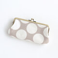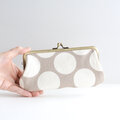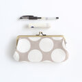 大きめドット柄の11号帆布生地を使って横長のがま口ポーチを作りました