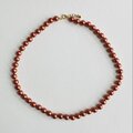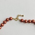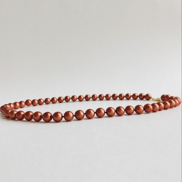 こちらはガラス素材の原玉に、オリジナルパール塗料にて何層にも渡り重ね塗りを施した日本製ガラスパールネックレスになります。パールの間1つづつ丁寧に結び目を加えたオールノット加工にて仕上げました。パールカラーはきめ細かい質感と優しい艶感が特徴のコーラルルージュ色。パールサイズは直径約8mm玉とスタンダードなサイズで、長さは標準的なプリンセスサイズよりもゆったりとした全長約48cm。テールエンドに短めのアジャスターを付けており、約2cm程の調節が可能です。※こちらは、ヨーロッパのコスチュームジュエリーブランド向けに、当工場にてパール塗装および製品加工をしていたストックパールを使用しております。当倉庫内で未使用でストックしていたものを今回の出品に際し新たにオールノット加工しました。