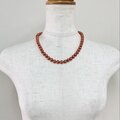 ガラスパールオールノットミディアムネックレス/8mm約48cm+2cm/コーラルルージュ/G/made in japan
