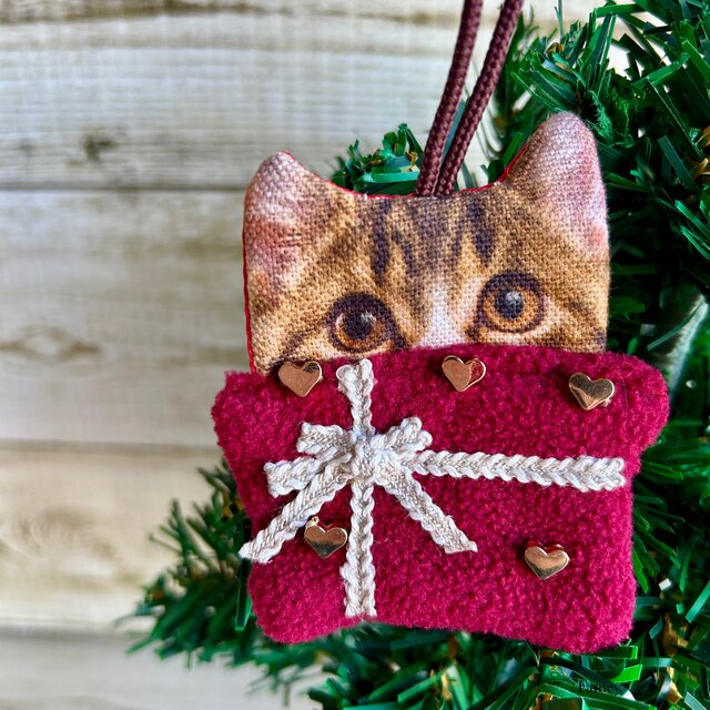 SALE!大人かわいい★猫ちゃんとプレゼントのクリスマスオーナメント④ フリース ハート クリスマス プレゼント ギフト