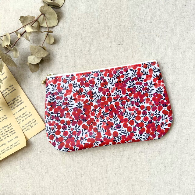 リバティプリントの「Wiltshire」柄のラミネート生地を使ったポーチです。