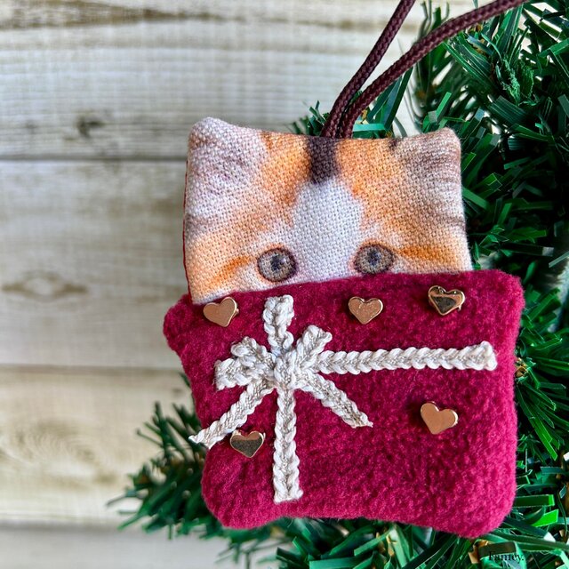 SALE!大人かわいい★猫ちゃんとプレゼントのクリスマスオーナメント② フリース ハート クリスマス プレゼント ギフト
