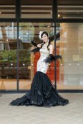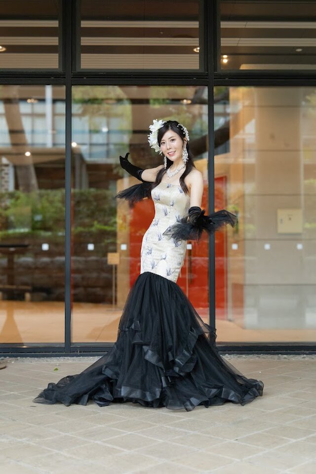 実例写真!着物ドレス、和風ドレス ブラック シャンパン色 チュールスカート アシンメトリースカート 編み上げ 発表会