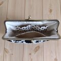 草花刺繍 大きめがま口ポーチ 通帳ケース 20cm口金 亜麻色 334可愛いコロンとしたポーチが届きました 吊り下げのカンも付いていてポシェットにもできます 先日プレゼント用に戴いたポシェットもとても気に入って下さり、直ぐにお使いされているそうです 素敵な作品ありがとうございました