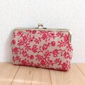 刺繍された生地を使用した、がま口の通帳ケースです。