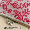 刺繍 お薬手帳・通帳ケース・がま口大きめポーチ 18cm口金 花柄 ベージュ 418