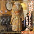 着物リメイクワンピース ドレス 洗える化繊 + 名古屋帯サッシュベルト 和洋折衷 レトロ 古着 ハンドメイド KW‑1105