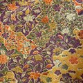 こっくりからし色の地に、葡萄紫・鶯みどり・柿色。
