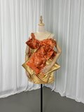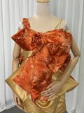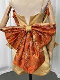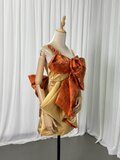 送料無料!着物ドレス、和風ドレス ゴールド ジャガード生地 キャミソール ふっくら柔らかなバックリボン バラトレーン 前撮り