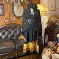 黒留袖 着物 リメイク ワンピース セミロングドレス 和洋折衷 洗える 化繊 漆黒に、金の水面。おしどりが舞う。 TKW-79