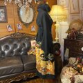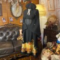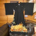 【 黒留袖 着物 リメイク ワンピース セミロングドレス 和洋折衷 洗える 化繊 ハンドメイド レトロ 古着 漆黒に、金の水面。おしどりが舞う。 TKW-79】