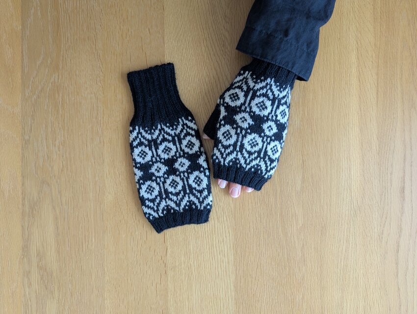 模様が美しく、心は冬の空や街に飛びます。手首部分はぴったりで、しっかり編まれていて暖かいです。丁寧なお仕事に感動しました。
