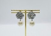 【チタンピアス】6月誕生石★卒業・入学式★薔薇・シルバーグレー・下がり1粒パール♪