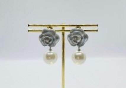 どのアイテムでもマッチする薔薇とパールのチタンピアスです。