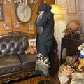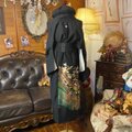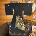 【 黒留袖 着物 リメイク ワンピース セミロングドレス 和洋折衷 洗える 化繊 ハンドメイド レトロ 古着 漆黒に翡翠の熨斗、桜と飛鶴が駆ける。 TKW-82】