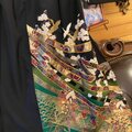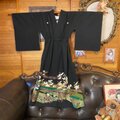 黒留袖 着物 リメイク ワンピース セミロングドレス 和洋折衷 洗える 漆黒に翡翠の熨斗、桜と飛鶴が駆ける。 TKW-82