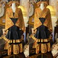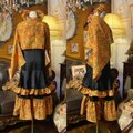 【 着物 ハンドメイド ワンピース パーティー ドレス 和洋折衷 コラージュ リメイク 切り替え 琥珀の秋花×黒ティアード、艶やかに舞う。 O-71】