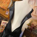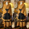 セットのドレスは艶やかなブラックで、Vネックのリングストラップと、裾へ向かって広がるマーメイド×ティアード。黒フリルに着物地のフリルを重ねて、揺れ感とドラマをプラス。ブーツで辛口に、ヒールでドレッシーに—秋のイベントやステージ、パーティまで活躍する和モダン・ドレスセットです。