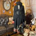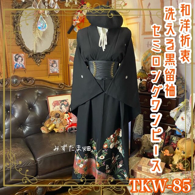 黒留袖 着物 リメイク ワンピース セミロングドレス 和洋折衷 洗える 化繊 漆黒に紫霞、鳳凰と白梅、凛と艶。 TKW-85