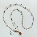 オマケでつけたチャームで2本のコードをまとめることで、グラスホルダーにするときに長さを調節できます。折り返して2連のネックレスにしたときに、センターに提げてもいいですね。もちろん単体でバッグチャームやキーホルダーにつけてもかわいいです。こちらは一つしかないので、1点限定で出品です。