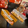 チャーム等、手縫いで縫い付けています。強い力を加えると破損しますので優しく取り扱い下さいませ。