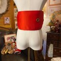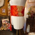 名古屋帯 リメイク サッシュベルト 飾り帯 和洋折衷 ハンドメイド レトロ 古着 L〜LL対応 朱赤×金糸大花文 ROB-137