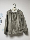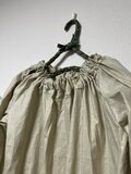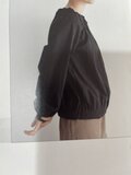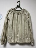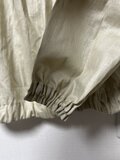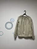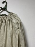 着心地のよいコットンリネンでシャーリングスモッグブラウスを制作いたしました。襟ぐり、袖口、裾口にゴムを入れギャザーを寄せました。そのためふんわりしし過ぎず、スッキリとした印象でパンツにもスカートにも合わせやすいです。