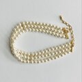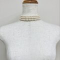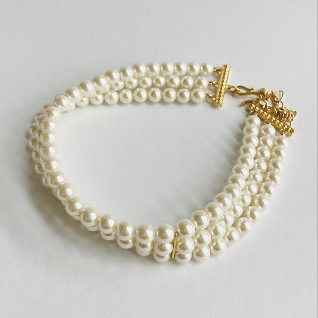 ガラスパール3連チョーカーネックレス/8mm約32cm+8cm/クリーム/G/made in japan