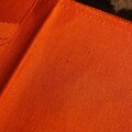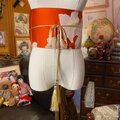 名古屋帯地から仕立てた、艶やかな朱橙(バーミリオン寄り)のワイドサッシュ。紐タッセルが軽やかなアクセント。内側ハトメに紐を通して前で結ぶだけの簡単仕様でサイズ調整も自在。着物・浴衣のアレンジはもちろん、ワンピースやシャツ、ドレスのウエストマークにも映える、華やかでモードな一本です。