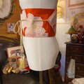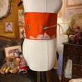 【名古屋帯 リメイク サッシュベルト 飾り帯 和洋折衷 ハンドメイド レトロ 古着 L〜LL対応 朱橙×薄桃の大花文 ROB-138】