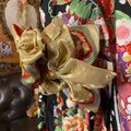 チャーム等、手縫いで縫い付けています。強い力を加えると破損しますので優しく取り扱い下さいませ。
