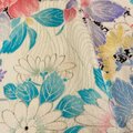 生成ベースに、薔薇・菊・百合など四季の花々をパステル(ローズ、ラベンダー、ミント、ターコイズ、レモン)で重ねた豪華絢爛柄。ところどころに黒×白小花のコントラストと、桜色の飾り紐が流れるように走り、全体をきゅっと引き締めます。黒小物・ベレー・ブーツと好相性で、パーティーやステージ、記念日フォトにもぴったりな一点物です。