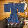 【 着物リメイク ワンピース ドレス 和洋折衷 洗える 化繊 帯サッシュベルト レトロ モダン ハンドメイド 藍紺×縞取り草花 KW-1118 】