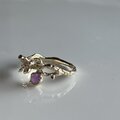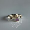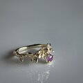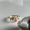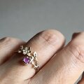 小さなお花が咲くリングにハックマナイトを添え、K10で1点もののリングにお仕立てしました。
