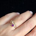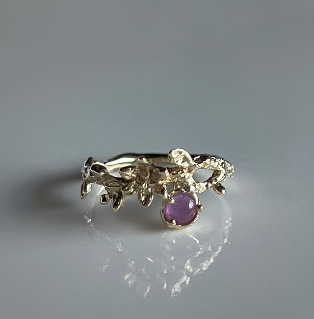 フラワーモチーフリングにハックマナイトをひと粒あしらい、上下どちらの向きでも着けられるデザインに。
